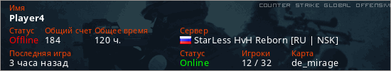 Последний раз был в сети 2 часа назад Игрок с таким ником замечен на 69 серверах