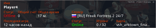 Играет на Team Fortress 2 сервере. Страна: РоссияПервый раз замечен 16:54 09.03.2026