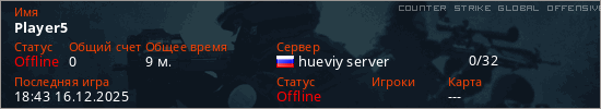 Играет на Counter Strike Global Offensive сервере. Страна: РоссияПервый раз замечен 18:33 16.12.2025