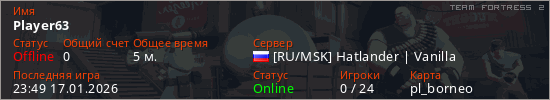 Играет на Team Fortress 2 сервере. Страна: РоссияПервый раз замечен 23:45 17.01.2026