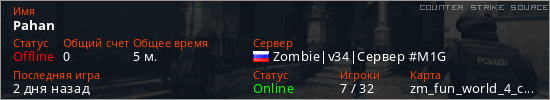 Последний раз был в сети 2 дня назад Игрок с таким ником замечен на 24 серверах