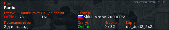 Последний раз был в сети 2 дня назад Игрок с таким ником замечен на 8 серверах