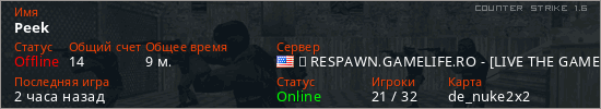 Играет на Counter Strike 1.6 сервере. Страна: СШАПервый раз замечен 20:40 26.03.2026