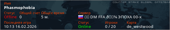Играет на Counter Strike Global Offensive сервере. Страна: РоссияПервый раз замечен 10:04 16.02.2026