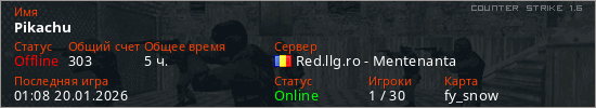Играет на Counter Strike 1.6 сервере. Страна: РумынияПервый раз замечен 13:16 22.03.2023