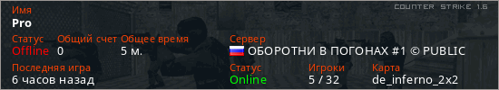 Играет на Counter Strike 1.6 сервере. Страна: РоссияПервый раз замечен 16:47 13.02.2026