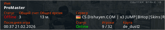Играет на Counter Strike 1.6 сервере. Страна: ГерманияПервый раз замечен 21:32 16.02.2026
