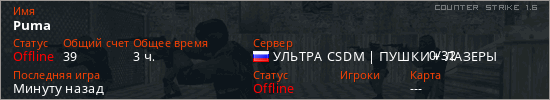 Играет на Counter Strike 1.6 сервере. Страна: РоссияПервый раз замечен 23:19 06.12.2025