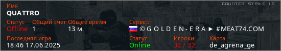 Играет на Counter Strike 1.6 сервере. Страна: РоссияПервый раз замечен 22:26 04.06.2025
