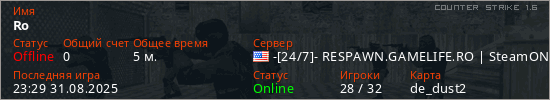 Играет на Counter Strike 1.6 сервере. Страна: СШАПервый раз замечен 23:27 31.08.2025