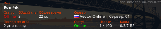 Играет на San Andreas Multiplayer сервере. Страна: РоссияПервый раз замечен 18:42 02.03.2026