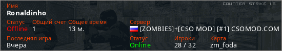 Последний раз был в сети Вчера Игрок с таким ником замечен на 17 серверах