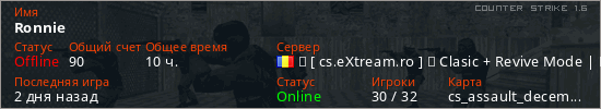 Играет на Counter Strike 1.6 сервере. Страна: РумынияПервый раз замечен 08:38 09.05.2025