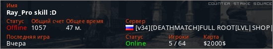 Последний раз был в сети Вчера Игрок с таким ником замечен на 5 серверах