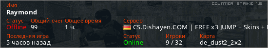 Последний раз был в сети 2 часа назад Игрок с таким ником замечен на 11 серверах
