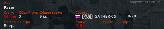 Играет на Counter Strike 1.6 сервере. Страна: РоссияПервый раз замечен 19:21 10.01.2026