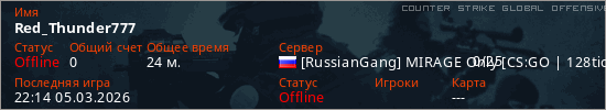 Играет на Counter Strike Global Offensive сервере. Страна: РоссияПервый раз замечен 23:27 04.03.2026