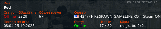 Играет на Counter Strike 1.6 сервере. Страна: СШАПервый раз замечен 23:20 28.01.2025