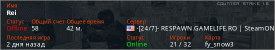 Последний раз был в сети 2 дня назад Игрок с таким ником замечен на 16 серверах