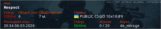 Играет на Counter Strike Global Offensive сервере. Страна: УкраинаПервый раз замечен 19:58 06.03.2026