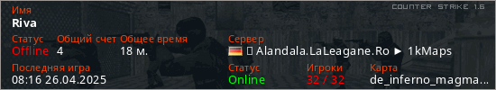 Последний раз был в сети 08:16 26.04.2025 Игрок с таким ником замечен на 2 серверах