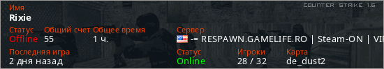 Играет на Counter Strike 1.6 сервере. Страна: СШАПервый раз замечен 21:06 25.06.2025