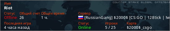 Играет на Counter Strike Global Offensive сервере. Страна: РоссияПервый раз замечен 19:04 01.04.2026