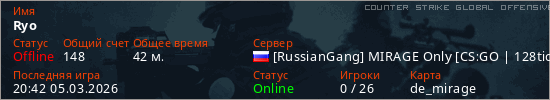 Играет на Counter Strike Global Offensive сервере. Страна: РоссияПервый раз замечен 10:35 27.02.2026