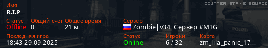 Играет на Counter Strike Source сервере. Страна: РоссияПервый раз замечен 13:45 09.09.2025