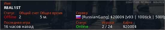 Играет на Counter Strike Source сервере. Страна: РоссияПервый раз замечен 16:33 01.03.2026