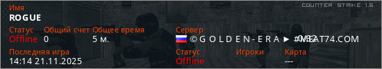 Играет на Counter Strike 1.6 сервере. Страна: РоссияПервый раз замечен 14:03 21.11.2025