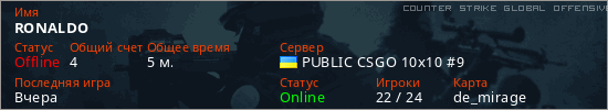 Последний раз был в сети Вчера Игрок с таким ником замечен на 32 серверах
