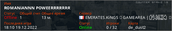 Общая информация игрока