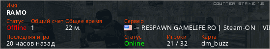Играет на Counter Strike 1.6 сервере. Страна: СШАПервый раз замечен 20:00 07.10.2025