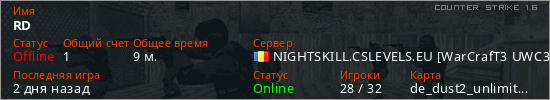 Последний раз был в сети Вчера Игрок с таким ником замечен на 12 серверах