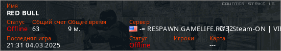 Играет на Counter Strike 1.6 сервере. Страна: СШАПервый раз замечен 11:34 04.03.2025