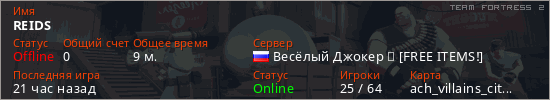 Играет на Team Fortress 2 сервере. Страна: РоссияПервый раз замечен 22:16 11.04.2026