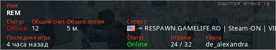 Играет на Counter Strike 1.6 сервере. Страна: СШАПервый раз замечен 13:19 03.02.2026