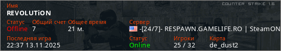 Играет на Counter Strike 1.6 сервере. Страна: СШАПервый раз замечен 11:34 06.04.2025