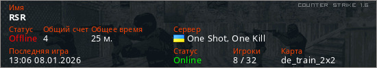 Играет на Counter Strike 1.6 сервере. Страна: УкраинаПервый раз замечен 05:02 06.01.2026
