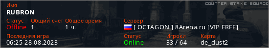 Играет на Counter Strike Source сервере. Страна: РоссияПервый раз замечен 13:51 01.07.2023