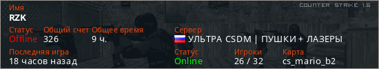 Играет на Counter Strike 1.6 сервере. Страна: РоссияПервый раз замечен 13:46 10.07.2025