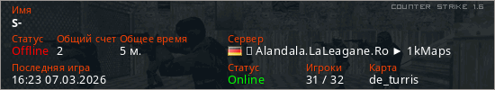Играет на Counter Strike 1.6 сервере. Страна: ГерманияПервый раз замечен 16:17 07.03.2026
