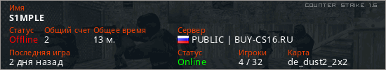 Играет на Counter Strike 1.6 сервере. Страна: РоссияПервый раз замечен 19:30 04.04.2026