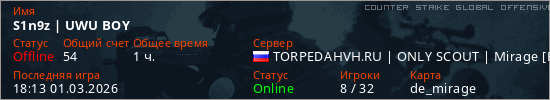 Играет на Counter Strike Global Offensive сервере. Страна: РоссияПервый раз замечен 20:38 21.02.2026