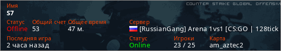 Играет на Counter Strike Global Offensive сервере. Страна: РоссияПервый раз замечен 18:46 02.04.2026