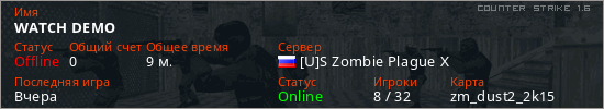 Последний раз был в сети Вчера Игрок с таким ником замечен на 17 серверах