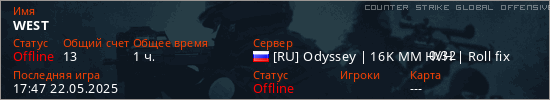 Играет на Counter Strike Global Offensive сервере. Страна: РоссияПервый раз замечен 21:12 11.04.2025