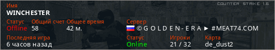 Играет на Counter Strike 1.6 сервере. Страна: РоссияПервый раз замечен 12:33 12.10.2025