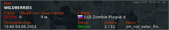 Играет на Counter Strike 1.6 сервере. Страна: РоссияПервый раз замечен 14:52 30.05.2024